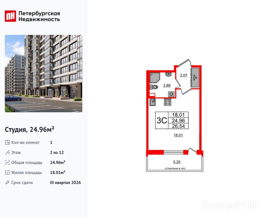 Продается студия в новостройке ЖК «Титул в Московском» по адресу Санкт-Петербург, Московский, ул. Кубинская, ЖК «Титул в Московском», корпус 1.1. Общая площадь квартиры - 24.96 кв. м. Тип проекта, по которому построен дом — Монолитно-кирпичный, компания-застройщик — Setl Group (Сэтл Групп), ООО «Новый элемент». Стоимость квартиры — 9 050 109 руб. Способы оплаты можно уточнить у продавца. Срок сдачи — 3 квартал 2026. Более подробная информация по телефону.