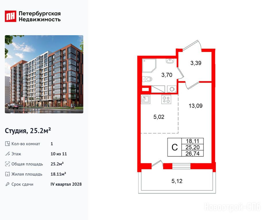 Продается студия в новостройке ЖК «Титул в Московском» по адресу Санкт-Петербург, Московский, ул. Кубинская, ЖК «Титул в Московском», корпус 2. Общая площадь квартиры - 25.2 кв. м. Тип проекта, по которому построен дом — Монолитно-кирпичный, компания-застройщик — Setl Group (Сэтл Групп), ООО «Новый элемент». Стоимость квартиры — 8 800 193 руб. Способы оплаты можно уточнить у продавца. Срок сдачи — 4 квартал 2028. Более подробная информация по телефону.