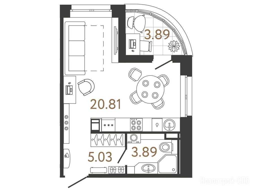 студия, 29.51 м2, 8 этаж