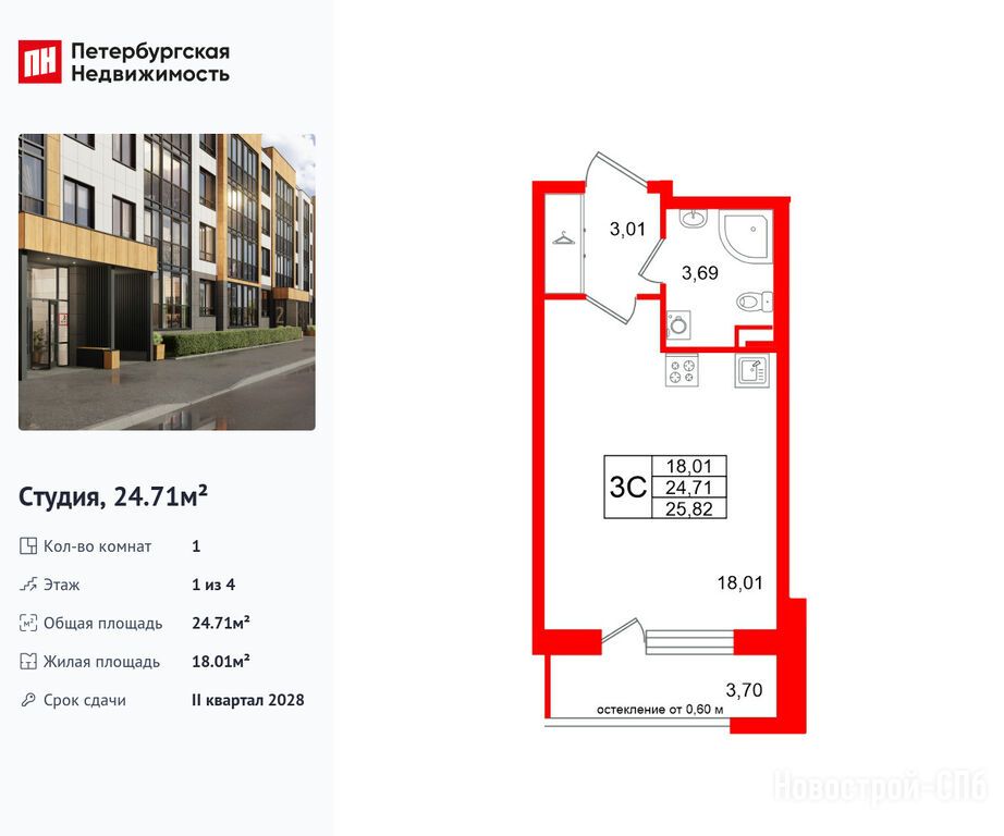 Продается студия в новостройке ЖК Univer City (Универ Сити) по адресу Санкт-Петербург, Пушкинский, Пушкин, Колпинское шоссе. Общая площадь квартиры - 24.71 кв. м. Тип проекта, по которому построен дом — Монолит, компания-застройщик — Setl Group (Сэтл Групп). Стоимость квартиры — 5 300 065 руб. Способы оплаты можно уточнить у продавца. Срок сдачи — 2 квартал 2028. Более подробная информация по телефону.