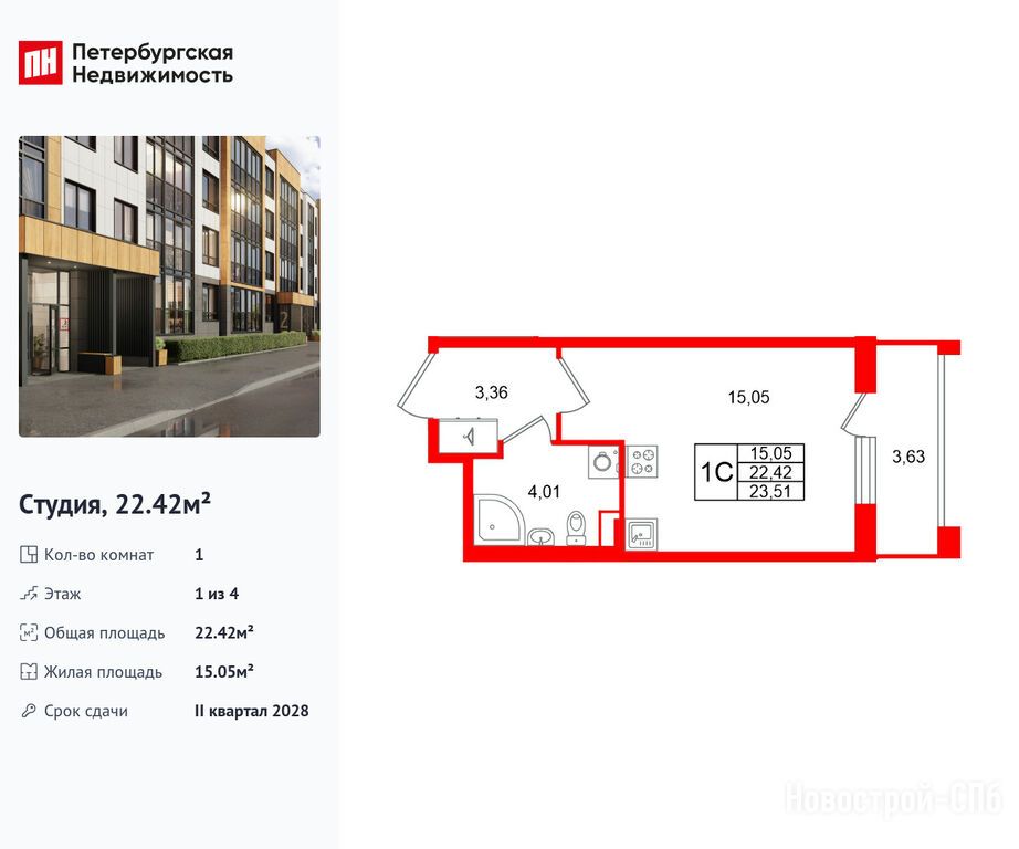 Продается студия в новостройке ЖК Univer City (Универ Сити) по адресу Санкт-Петербург, Пушкинский, Пушкин, Колпинское шоссе. Общая площадь квартиры - 22.42 кв. м. Тип проекта, по которому построен дом — Монолит, компания-застройщик — Setl Group (Сэтл Групп). Стоимость квартиры — 4 950 056 руб. Способы оплаты можно уточнить у продавца. Срок сдачи — 2 квартал 2028. Более подробная информация по телефону.