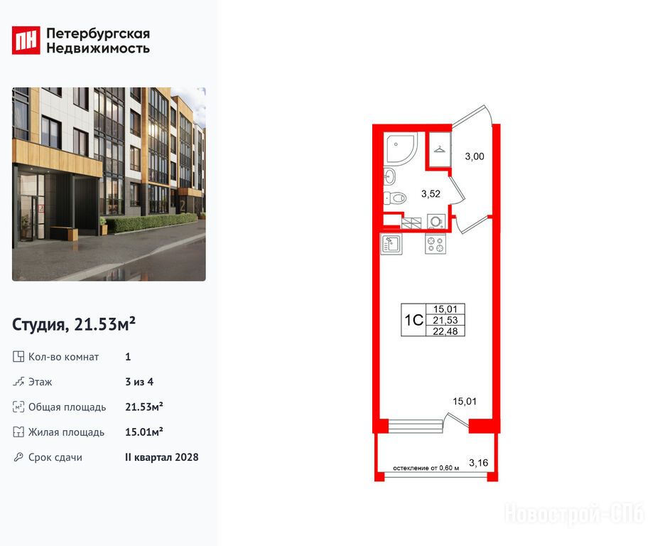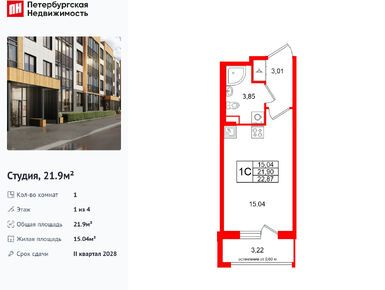 Продается студия в новостройке ЖК Univer City (Универ Сити) по адресу Санкт-Петербург, Пушкинский, Пушкин, Колпинское шоссе. Общая площадь квартиры - 21.53 кв. м. Тип проекта, по которому построен дом — Монолит, компания-застройщик — Setl Group (Сэтл Групп). Стоимость квартиры — 5 000 063 руб. Способы оплаты можно уточнить у продавца. Срок сдачи — 2 квартал 2028. Более подробная информация по телефону.