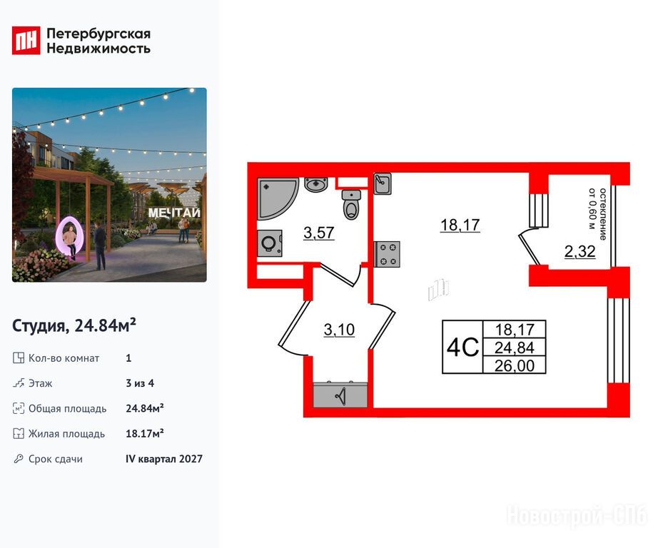 Продается студия в новостройке ЖК Univer City (Универ Сити) по адресу Санкт-Петербург, Пушкинский, Пушкин, Колпинское шоссе. Общая площадь квартиры - 24.84 кв. м. Тип проекта, по которому построен дом — Монолит, компания-застройщик — Setl Group (Сэтл Групп). Стоимость квартиры — 5 300 226 руб. Способы оплаты можно уточнить у продавца. Срок сдачи — 4 квартал 2027. Более подробная информация по телефону.