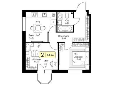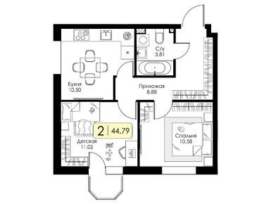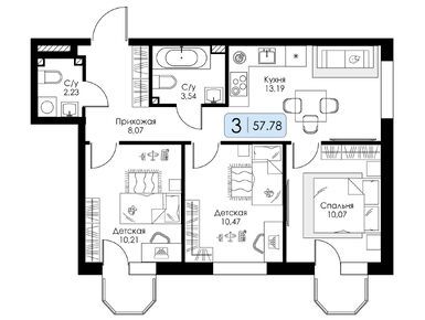 Очень довольна выбранной планировкой. Кухня, гостиная просто огромные, а спальня правильной формы, удобно для расстановки мебели. Спасибо за такие решения!