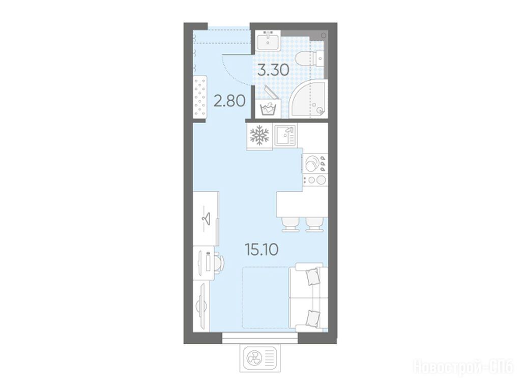 студия, 21.20 м2, 7 этаж