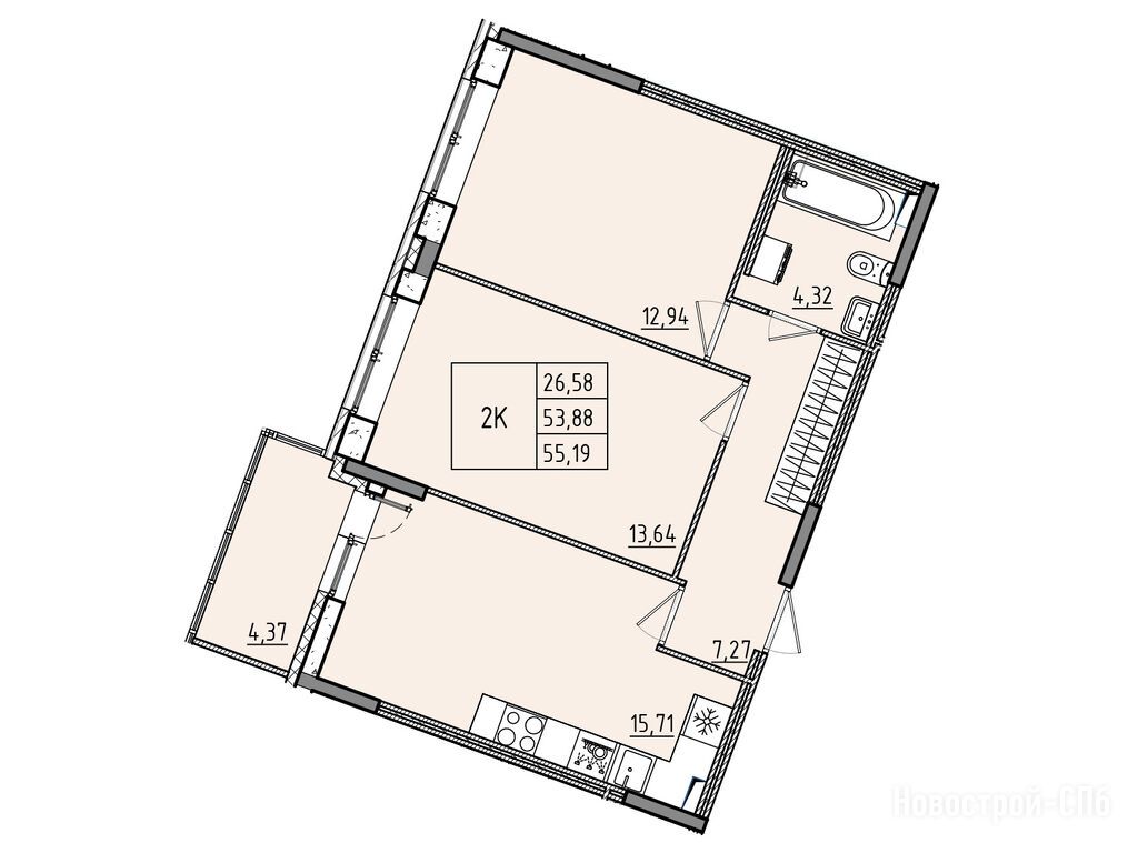 Продается трехкомнатная квартира в новостройке ЖК «Аквилон RekaPark» по адресу Ленинградская область, Всеволожский район, Ленинградская область, Всеволожский район, д. Новосергиевка. Общая площадь квартиры - 55.19 кв. м. Тип проекта, по которому построен дом — Кирпичный, компания-застройщик — Группа «Аквилон». Стоимость квартиры — 10 405 672 руб. Способы оплаты можно уточнить у продавца. Срок сдачи — 2 квартал 2027. Более подробная информация по телефону.