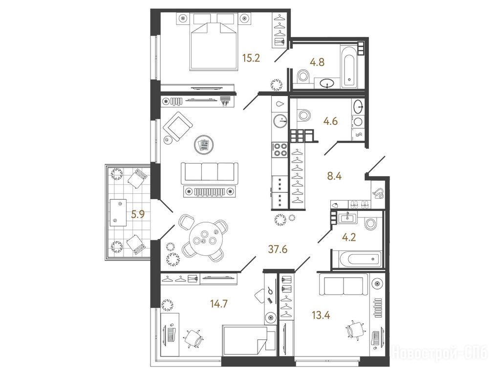 3-комн. помещение, 102.90 м2, 4 этаж