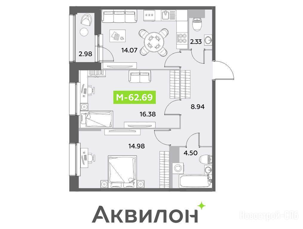 Продается трехкомнатная квартира в новостройке ЖК «Аквилон Leaves» по адресу Санкт-Петербург, Московский, ш. Пулковское, д. 30. Общая площадь квартиры - 62.69 кв. м. Тип проекта, по которому построен дом — Монолитно-каркасный, компания-застройщик — Группа «Аквилон». Стоимость квартиры — 23 957 767 руб. Способы оплаты можно уточнить у продавца. Срок сдачи — 4 квартал 2025. Более подробная информация по телефону.