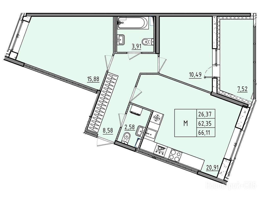 Продается трехкомнатная квартира в новостройке ЖК «Аквилон RekaPark» по адресу Ленинградская область, Всеволожский район, Ленинградская область, Всеволожский район, д. Новосергиевка. Общая площадь квартиры - 66.11 кв. м. Тип проекта, по которому построен дом — Кирпичный, компания-застройщик — Группа «Аквилон». Стоимость квартиры — 10 479 164 руб. Способы оплаты можно уточнить у продавца. Срок сдачи — 2 квартал 2027. Более подробная информация по телефону.
