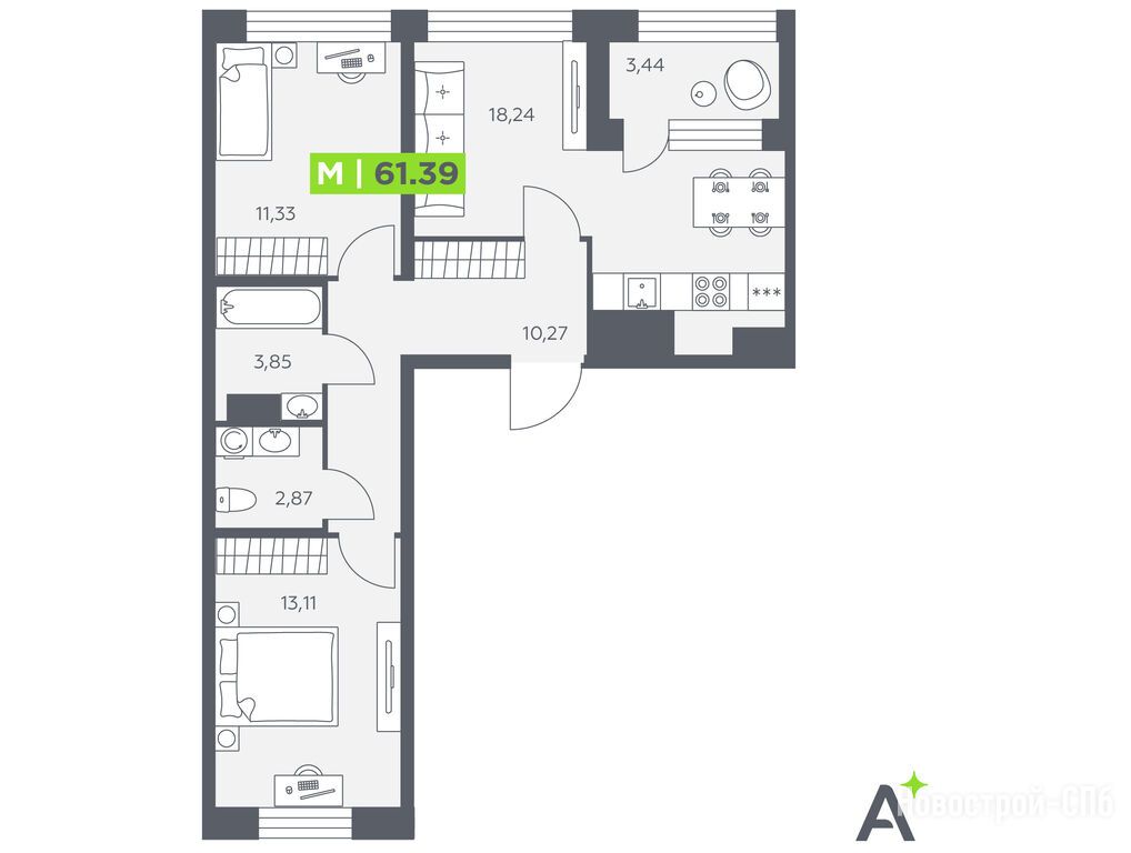 Продается трехкомнатная квартира в новостройке ЖК «Аквилон Солар Парк» по адресу Санкт-Петербург, Пушкинский, Шушары пос., ул. Школьная, «Аквилон Солар Парк». Общая площадь квартиры - 61.39 кв. м. Тип проекта, по которому построен дом — Монолитно-кирпичный, компания-застройщик — Группа «Аквилон», ООО СЗ «Вектор». Стоимость квартиры — 10 154 241 руб. Способы оплаты можно уточнить у продавца. Срок сдачи — 4 квартал 2028. Более подробная информация по телефону.