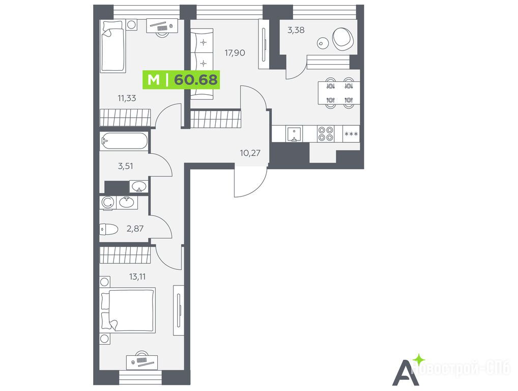 Продается трехкомнатная квартира в новостройке ЖК «Аквилон Солар Парк» по адресу Санкт-Петербург, Пушкинский, Шушары пос., ул. Школьная, «Аквилон Солар Парк». Общая площадь квартиры - 60.68 кв. м. Тип проекта, по которому построен дом — Монолитно-кирпичный, компания-застройщик — Группа «Аквилон», ООО СЗ «Вектор». Стоимость квартиры — 10 624 035 руб. Способы оплаты можно уточнить у продавца. Срок сдачи — 4 квартал 2028. Более подробная информация по телефону.