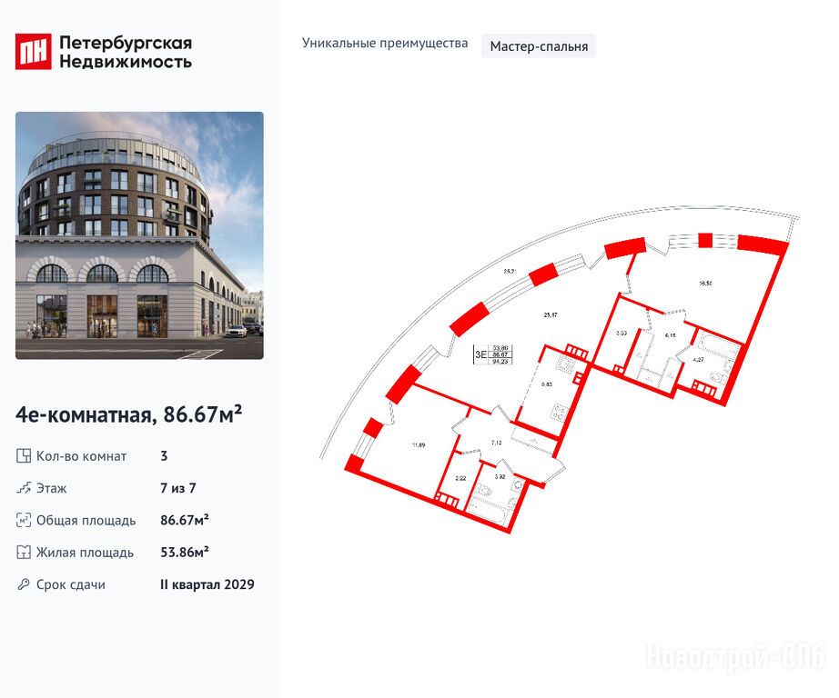 Продается трехкомнатная квартира в новостройке ЖК «Аристократ» по адресу Санкт-Петербург, Василеостровский, 26-я линия В.О., д. 1, литера А, корпус 4. Общая площадь квартиры - 86.67 кв. м. Тип проекта, по которому построен дом — Монолитно-кирпичный, компания-застройщик — Setl Group (Сэтл Групп), СЗ «Остров Сити». Стоимость квартиры — 56 162 160 руб. Способы оплаты можно уточнить у продавца. Срок сдачи — 2 квартал 2029. Более подробная информация по телефону.