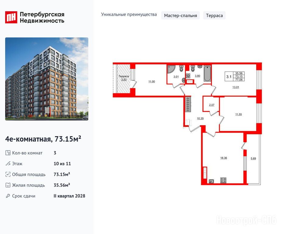 Продается трехкомнатная квартира в новостройке ЖК «Астра Континенталь» по адресу Санкт-Петербург, Невский, пр-кт Обуховской Обороны / Большой Смоленский пр-кт. Общая площадь квартиры - 73.15 кв. м. Тип проекта, по которому построен дом — Монолитно-каркасный, компания-застройщик — Setl Group (Сэтл Групп). Стоимость квартиры — 27 200 107 руб. Способы оплаты можно уточнить у продавца. Срок сдачи — 2 квартал 2028. Более подробная информация по телефону.