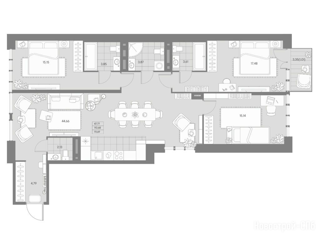 Продается трехкомнатная квартира в новостройке ЖК AVANT (Авант) по адресу Санкт-Петербург, Петроградский, ул. Пионерская, д. 53, корпус Balance. Общая площадь квартиры - 111.69 кв. м. Тип проекта, по которому построен дом — Монолит, компания-застройщик — Компания AAG. Стоимость квартиры — 78 002 745 руб. Способы оплаты можно уточнить у продавца. Срок сдачи — 2 квартал 2027. Более подробная информация по телефону.
