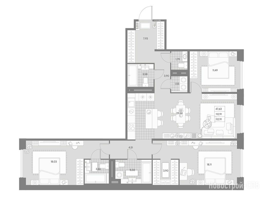 Продается трехкомнатная квартира в новостройке ЖК AVANT (Авант) по адресу Санкт-Петербург, Петроградский, ул. Пионерская, д. 53, корпус Klassik. Общая площадь квартиры - 112.91 кв. м. Тип проекта, по которому построен дом — Монолит, компания-застройщик — Компания AAG. Стоимость квартиры — 79 290 894 руб. Способы оплаты можно уточнить у продавца. Срок сдачи — 2 квартал 2027. Более подробная информация по телефону.