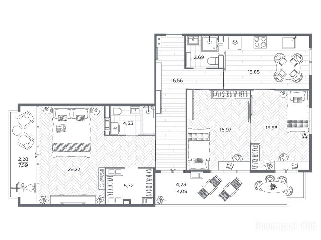 Комплекс получился красивым, статным, причем и снаружи, и изнутри. Был в качестве гостя, оценил оформление парадной, планировку, виды из окна. Хотел бы я жить в таком доме и в такой просторной трехкомнатной с балконом.