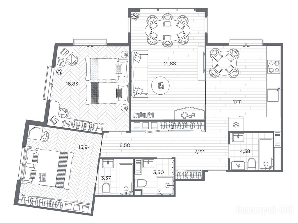 Комплекс получился красивым, статным, причем и снаружи, и изнутри. Был в качестве гостя, оценил оформление парадной, планировку, виды из окна. Хотел бы я жить в таком доме и в такой просторной трехкомнатной с балконом.
