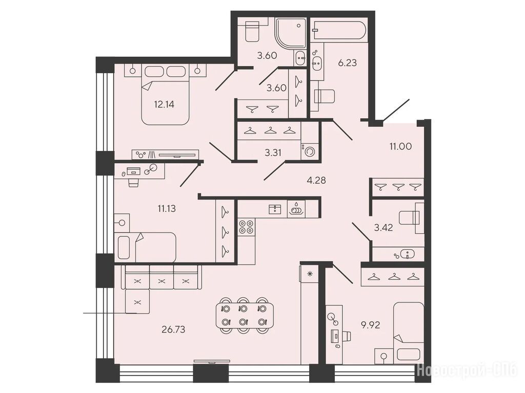 Здесь несколько башен с разными типами квартир, что позволяет выбрать что-то подходящее под свои нужды.