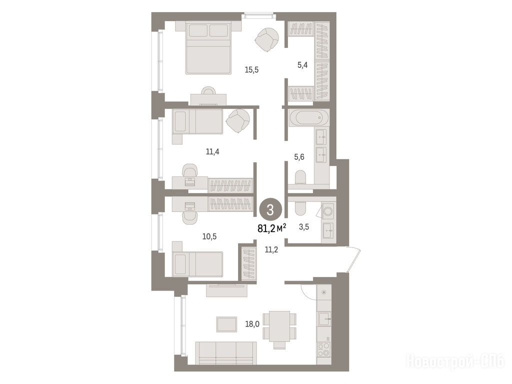 Продается трехкомнатная квартира в новостройке ЖК «Брусника в Новоселье» по адресу Ленинградская область, Ломоносовский район, Аннинское, Новоселье пос., Петропавловская ул., ЖК «Брусника в Новоселье», корпус 2. Общая площадь квартиры - 81.2 кв. м. Тип проекта, по которому построен дом — Монолитно-кирпичный, компания-застройщик — Брусника, ООО «СЗ Выдача ключей». Стоимость квартиры — 11 610 000 руб. Способы оплаты можно уточнить у продавца. Срок сдачи — 4 квартал 2027. Более подробная информация по телефону.
