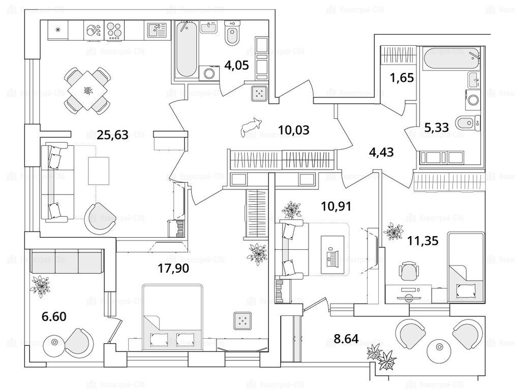 Продается трехкомнатная квартира в новостройке ЖК Cube (Куб) по адресу Санкт-Петербург, Московский, Кубинская улица, 82к3с1. Общая площадь квартиры - 98.9 кв. м. Тип проекта, по которому построен дом — Монолит, компания-застройщик — ООО «Специализированный застройщик «РСТИ-Нова», ГК РСТИ (РосСтройИнвест). Стоимость квартиры — 24 088 507 руб. Способы оплаты можно уточнить у продавца. Более подробная информация по телефону.
