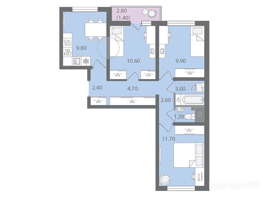3-комн. квартира 57,40 м2 11 261 880