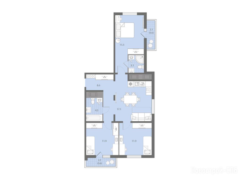 2-комн. квартира 58,10 м2 17 854 130
