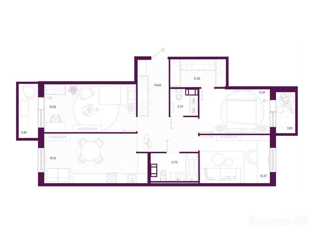 Радует, что можно приобрести квартиру с такой стильной и функциональной планировкой. А хорошая инфраструктура – залог того, что будущая квартира будет пользоваться спросом при перепродаже или сдаче в аренду