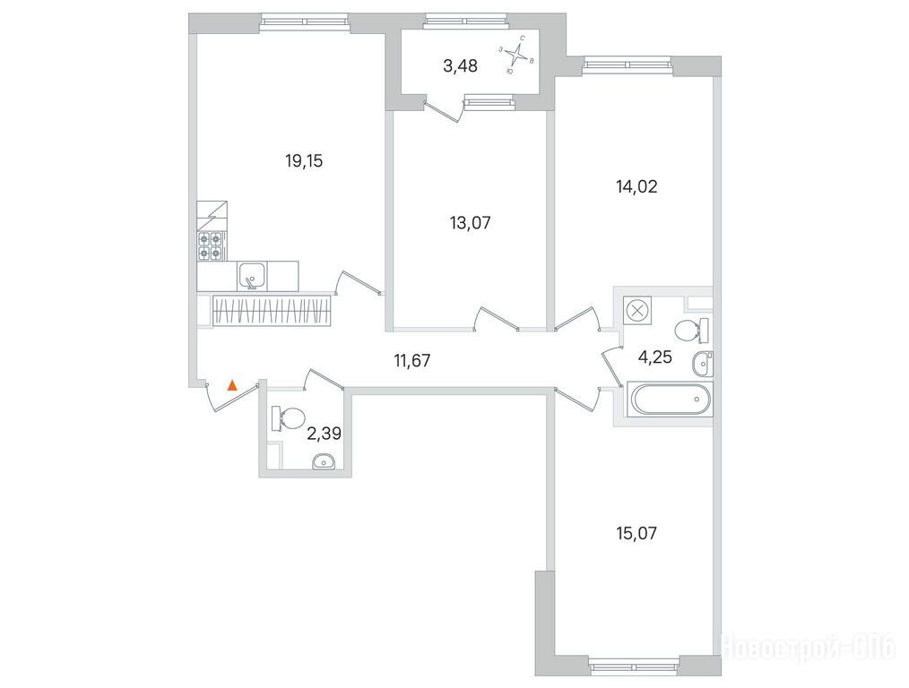 Расположение 3-комн. квартиры