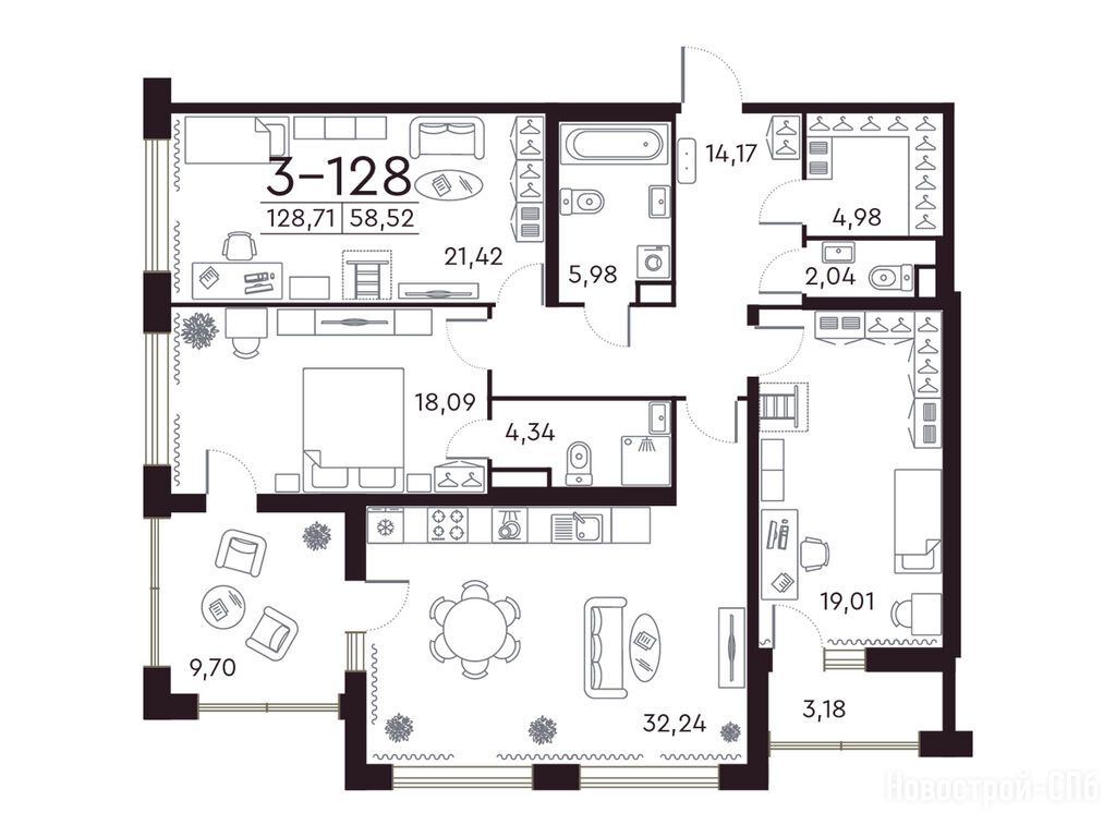 Продается трехкомнатная квартира в новостройке ЖК Familia (Фамилия) по адресу Санкт-Петербург, Петроградский, Петровский пр., 20, лит. С. Общая площадь квартиры - 129.1 кв. м. Тип проекта, по которому построен дом — Монолит, компания-застройщик — ГК РСТИ (РосСтройИнвест), ООО «РСТИ-ФАМИЛИЯ». Стоимость квартиры — 63 699 429 руб. Способы оплаты можно уточнить у продавца. Более подробная информация по телефону.