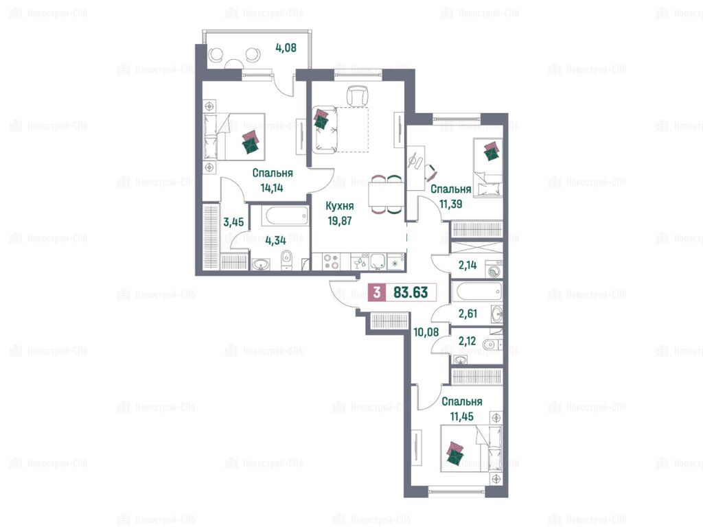 Продается трехкомнатная квартира в новостройке ЖК «Фотограф» по адресу Ленинградская область, Всеволожский район, Мурино, Ручьевский пр-т, д. 1/24, корпус 3. Общая площадь квартиры - 83.63 кв. м. Тип проекта, по которому построен дом — Монолитно-кирпичный, компания-застройщик — Инвестиционно-строительная группа «МАВИС». Стоимость квартиры — 16 475 110 руб. Способы оплаты можно уточнить у продавца. Срок сдачи — 4 квартал 2025. Более подробная информация по телефону.
