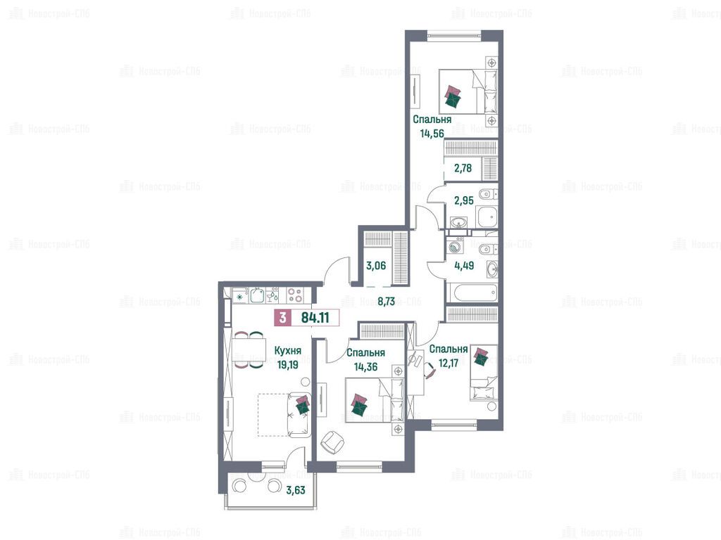 Продается трехкомнатная квартира в новостройке ЖК «Фотограф» по адресу Ленинградская область, Всеволожский район, Мурино, Ручьевский пр-т, д. 1/24, корпус 3. Общая площадь квартиры - 84.11 кв. м. Тип проекта, по которому построен дом — Монолитно-кирпичный, компания-застройщик — Инвестиционно-строительная группа «МАВИС». Стоимость квартиры — 16 477 149 руб. Способы оплаты можно уточнить у продавца. Срок сдачи — 4 квартал 2025. Более подробная информация по телефону.