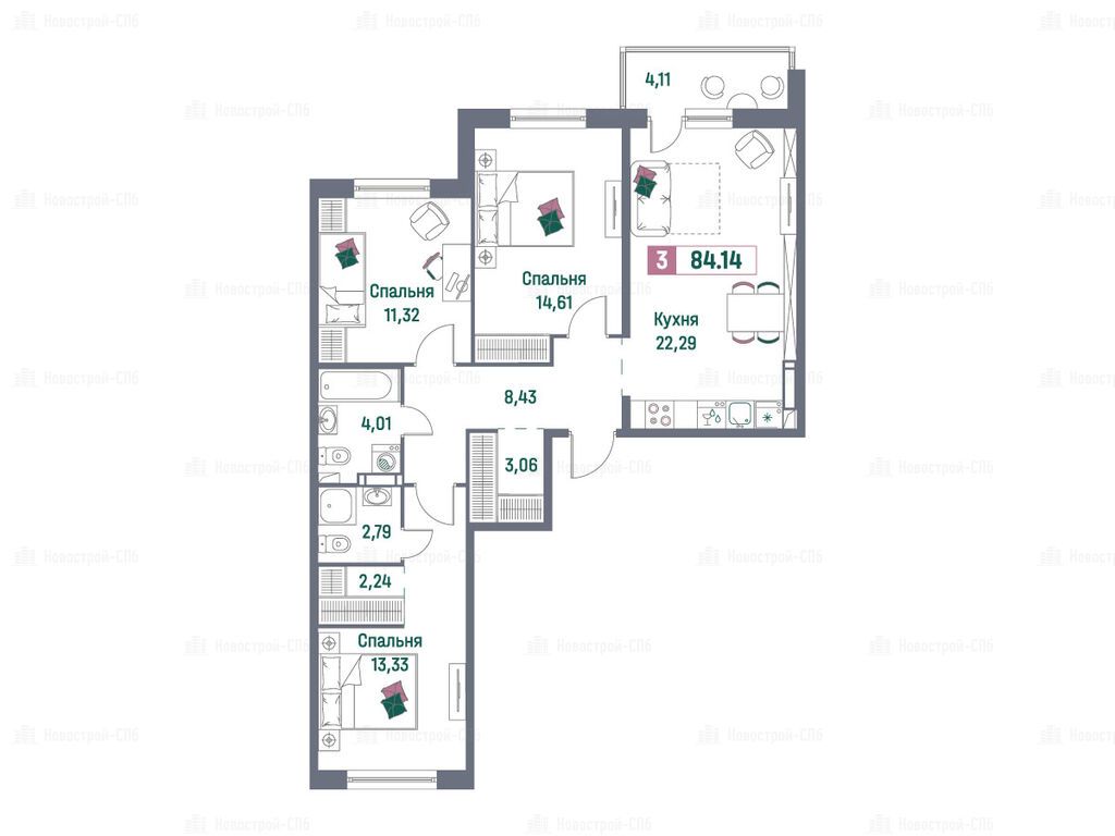 Продается трехкомнатная квартира в новостройке ЖК «Фотограф» по адресу Ленинградская область, Всеволожский район, Мурино, Ручьевский пр-т, д. 1/24, корпус 3. Общая площадь квартиры - 84.14 кв. м. Тип проекта, по которому построен дом — Монолитно-кирпичный, компания-застройщик — Инвестиционно-строительная группа «МАВИС». Стоимость квартиры — 14 968 506 руб. Способы оплаты можно уточнить у продавца. Срок сдачи — 4 квартал 2025. Более подробная информация по телефону.
