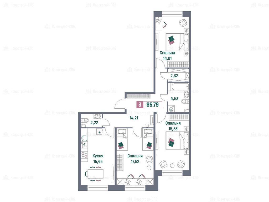 Продается трехкомнатная квартира в новостройке ЖК «Фотограф» по адресу Ленинградская область, Всеволожский район, Мурино, Ручьевский пр-т, д. 1/24, корпус 2. Общая площадь квартиры - 85.79 кв. м. Тип проекта, по которому построен дом — Монолитно-кирпичный, компания-застройщик — Инвестиционно-строительная группа «МАВИС». Стоимость квартиры — 16 291 521 руб. Способы оплаты можно уточнить у продавца. Срок сдачи — 4 квартал 2025. Более подробная информация по телефону.