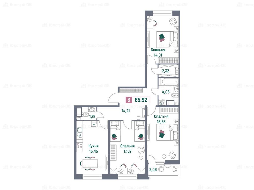 Продается трехкомнатная квартира в новостройке ЖК «Фотограф» по адресу Ленинградская область, Всеволожский район, Мурино, Ручьевский пр-т, д. 1/24, корпус 2. Общая площадь квартиры - 85.92 кв. м. Тип проекта, по которому построен дом — Монолитно-кирпичный, компания-застройщик — Инвестиционно-строительная группа «МАВИС». Стоимость квартиры — 16 367 760 руб. Способы оплаты можно уточнить у продавца. Срок сдачи — 4 квартал 2025. Более подробная информация по телефону.