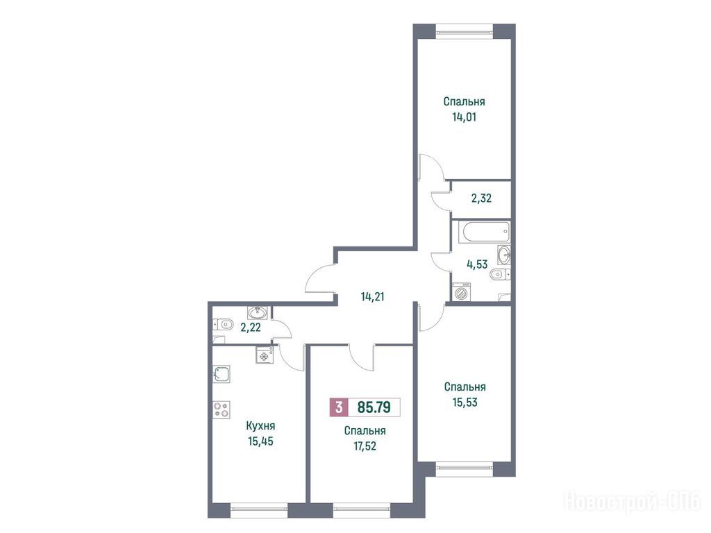 Продается трехкомнатная квартира в новостройке ЖК «Фотограф» по адресу Ленинградская область, Всеволожский район, Мурино, Ручьевский пр-т, д. 1/24, корпус 2. Общая площадь квартиры - 86.5 кв. м. Тип проекта, по которому построен дом — Монолитно-кирпичный, компания-застройщик — Инвестиционно-строительная группа «МАВИС». Стоимость квартиры — 14 523 350 руб. Способы оплаты можно уточнить у продавца. Срок сдачи — 4 квартал 2025. Более подробная информация по телефону.