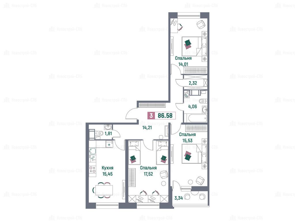 Продается трехкомнатная квартира в новостройке ЖК «Фотограф» по адресу Ленинградская область, Всеволожский район, Мурино, Ручьевский пр-т, д. 1/24, корпус 2. Общая площадь квартиры - 86.58 кв. м. Тип проекта, по которому построен дом — Монолитно-кирпичный, компания-застройщик — Инвестиционно-строительная группа «МАВИС». Стоимость квартиры — 16 493 490 руб. Способы оплаты можно уточнить у продавца. Срок сдачи — 4 квартал 2025. Более подробная информация по телефону.