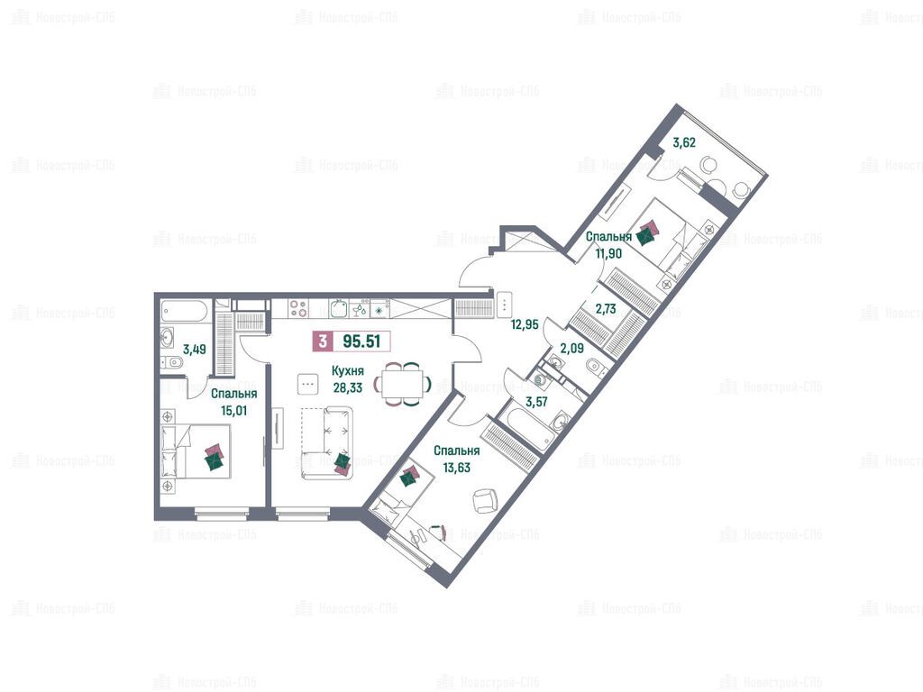 Продается трехкомнатная квартира в новостройке ЖК «Фотограф» по адресу Ленинградская область, Всеволожский район, Мурино, Ручьевский пр-т, д. 1/24, корпус 3. Общая площадь квартиры - 95.22 кв. м. Тип проекта, по которому построен дом — Монолитно-кирпичный, компания-застройщик — Инвестиционно-строительная группа «МАВИС». Стоимость квартиры — 18 328 970 руб. Способы оплаты можно уточнить у продавца. Срок сдачи — 4 квартал 2025. Более подробная информация по телефону.
