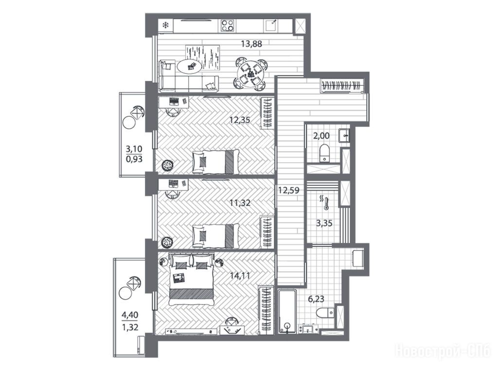 Продается трехкомнатная квартира в новостройке ЖК FRIENDS (Френдс) по адресу Санкт-Петербург, Приморский, Суздальское шоссе. Общая площадь квартиры - 77.2 кв. м. Тип проекта, по которому построен дом — Монолит, компания-застройщик — ПСК. Стоимость квартиры — 19 065 244 руб. Способы оплаты можно уточнить у продавца. Более подробная информация по телефону.