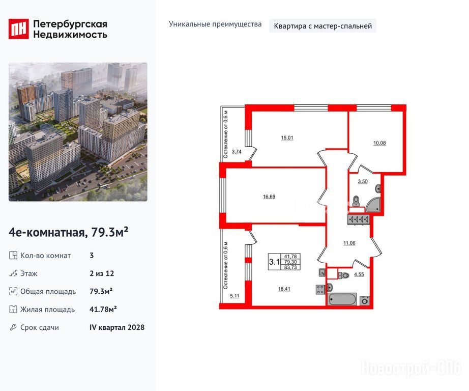 Продается трехкомнатная квартира в новостройке ЖК «Город звёзд» по адресу Ленинградская область, Всеволожский район, Поселок им. Свердлова, Новосаратовка дер., ЖК «Город звезд», корпус 11. Общая площадь квартиры - 79.3 кв. м. Тип проекта, по которому построен дом — Монолитно-кирпичный, компания-застройщик — Setl Group (Сэтл Групп). Стоимость квартиры — 13 800 500 руб. Способы оплаты можно уточнить у продавца. Срок сдачи — 4 квартал 2028. Более подробная информация по телефону.