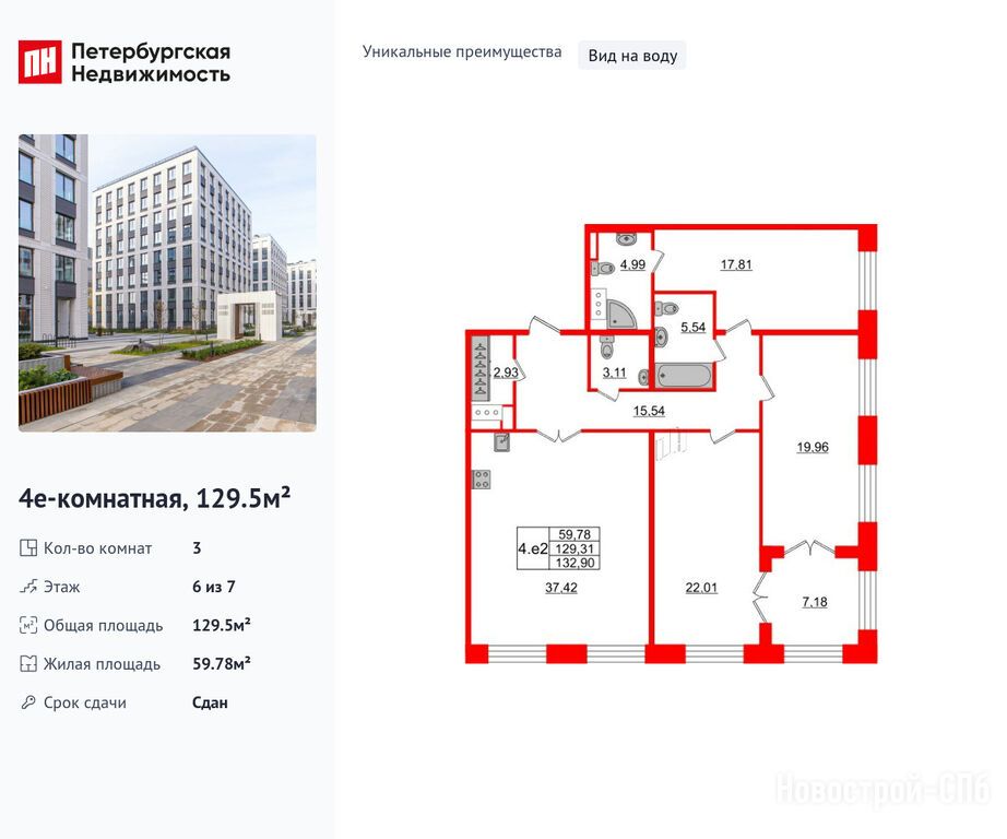 Продается трехкомнатная квартира в новостройке ЖК Grand View (Гранд Вью) по адресу Санкт-Петербург, Петроградский, Петровский пр., д. 28, к.2. Общая площадь квартиры - 129.5 кв. м. Тип проекта, по которому построен дом — Монолит, компания-застройщик — Setl Group (Сэтл Групп). Стоимость квартиры — 92 074 500 руб. Способы оплаты можно уточнить у продавца. Более подробная информация по телефону.