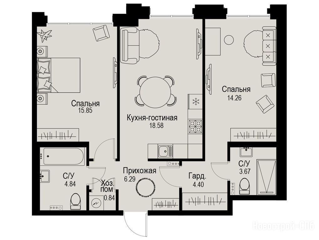 Разнообразие отличное, а количество квартир на каждом этаже небольшое, так что квартал не станет перегруженным. Помещения общего пользования, представленные на презентации, выглядят очень стильно и дорого.
