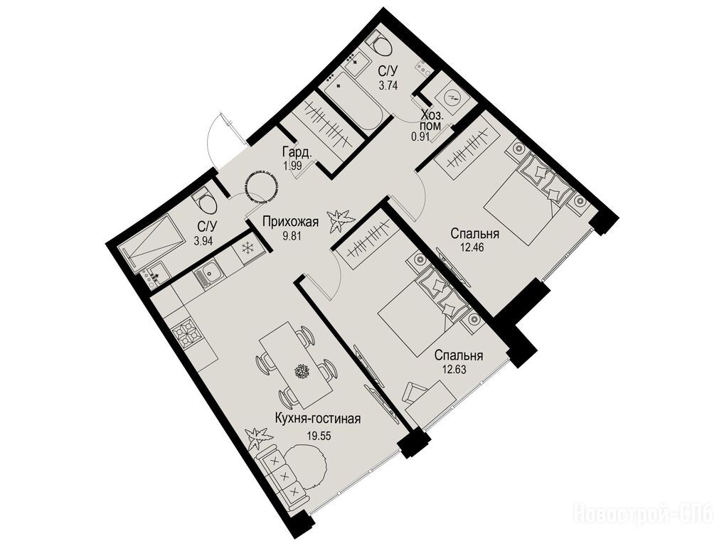 Разнообразие отличное, а количество квартир на каждом этаже небольшое, так что квартал не станет перегруженным. Помещения общего пользования, представленные на презентации, выглядят очень стильно и дорого.