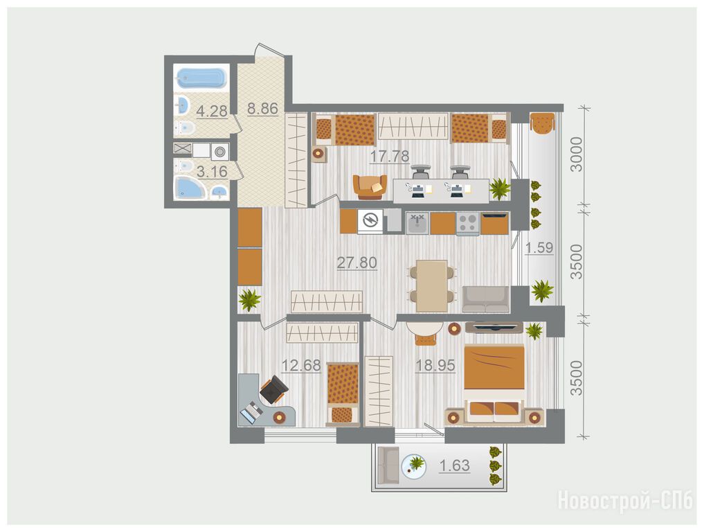 Продается трехкомнатная квартира в новостройке ЖК «Эко-квартал Гармония» по адресу Ленинградская область, Ломоносовский район, Горбунковское, Разбегаево дер., Стрельнинское шоссе, ЖК «Эко-квартал Гармония», корпус 1.2. Общая площадь квартиры - 96.73 кв. м. Тип проекта, по которому построен дом — Монолит, компания-застройщик — СЗ «Экострой». Стоимость квартиры — 12 865 090 руб. Способы оплаты можно уточнить у продавца. Срок сдачи — 2 квартал 2026. Более подробная информация по телефону.