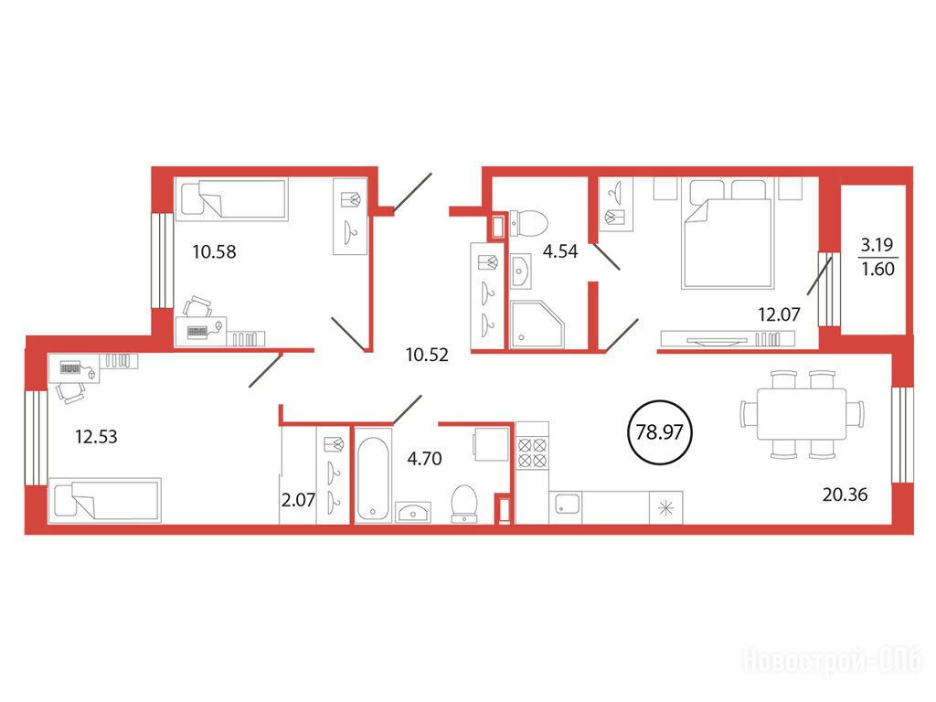 Продается трехкомнатная квартира в новостройке ЖК «Энфилд» по адресу Ленинградская область, Всеволожский район, Бугровское С/П, Бугры, вблизи ул. Шоссейная, корп. 2. Общая площадь квартиры - 78.97 кв. м. Тип проекта, по которому построен дом — Монолитно-кирпичный, компания-застройщик — Arsenal (Арсенал), ООО «Арсенал Групп». Стоимость квартиры — 13 788 162 руб. Способы оплаты можно уточнить у продавца. Срок сдачи — 4 квартал 2027. Более подробная информация по телефону.