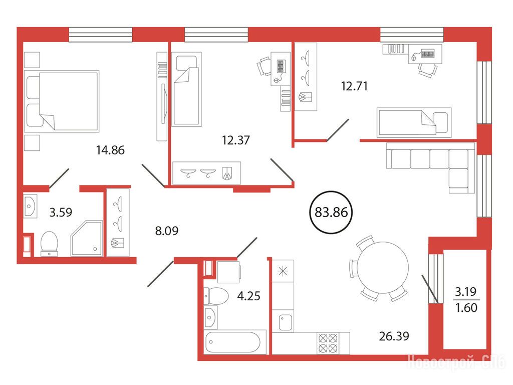 Продается трехкомнатная квартира в новостройке ЖК «Энфилд» по адресу Ленинградская область, Всеволожский район, Бугровское С/П, Бугры, вблизи ул. Шоссейная, корп. 2. Общая площадь квартиры - 83.86 кв. м. Тип проекта, по которому построен дом — Монолитно-кирпичный, компания-застройщик — Arsenal (Арсенал), ООО «Арсенал Групп». Стоимость квартиры — 14 641 956 руб. Способы оплаты можно уточнить у продавца. Срок сдачи — 4 квартал 2027. Более подробная информация по телефону.