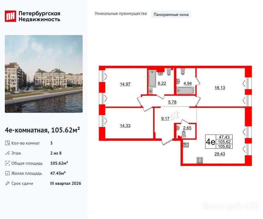 Продается трехкомнатная квартира в новостройке ЖК Imperial Club (Империал Клаб) по адресу Санкт-Петербург, Василеостровский, улица Масляный канал. Общая площадь квартиры - 105.62 кв. м. Тип проекта, по которому построен дом — Монолитно-кирпичный, компания-застройщик — Setl Group (Сэтл Групп). Стоимость квартиры — 57 985 380 руб. Способы оплаты можно уточнить у продавца. Срок сдачи — 3 квартал 2026. Более подробная информация по телефону.