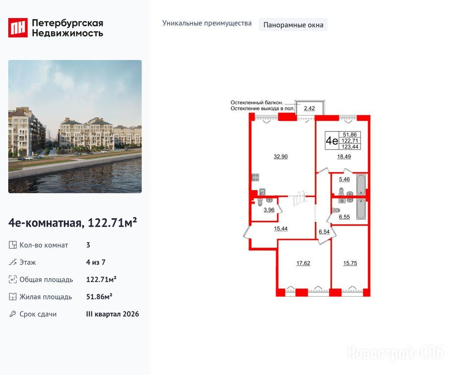 Продается трехкомнатная квартира в новостройке ЖК Imperial Club (Империал Клаб) по адресу Санкт-Петербург, Василеостровский, улица Масляный канал. Общая площадь квартиры - 122.71 кв. м. Тип проекта, по которому построен дом — Монолитно-кирпичный, компания-застройщик — Setl Group (Сэтл Групп). Стоимость квартиры — 61 845 840 руб. Способы оплаты можно уточнить у продавца. Срок сдачи — 3 квартал 2026. Более подробная информация по телефону.