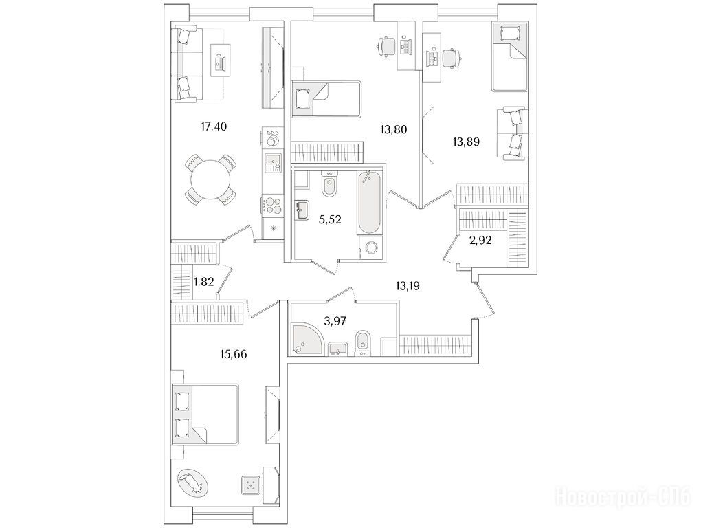 Продается трехкомнатная квартира в новостройке ЖК «Кинопарк» по адресу Санкт-Петербург, Красносельский, улица Тамбасова, 5, корп. 2.1. Общая площадь квартиры - 88.17 кв. м. Тип проекта, по которому построен дом — Монолитно-кирпичный, компания-застройщик — ГК РСТИ (РосСтройИнвест), СЗ РСТИ на Тамбасова. Стоимость квартиры — 22 789 354 руб. Способы оплаты можно уточнить у продавца. Срок сдачи — 2 квартал 2028. Более подробная информация по телефону.