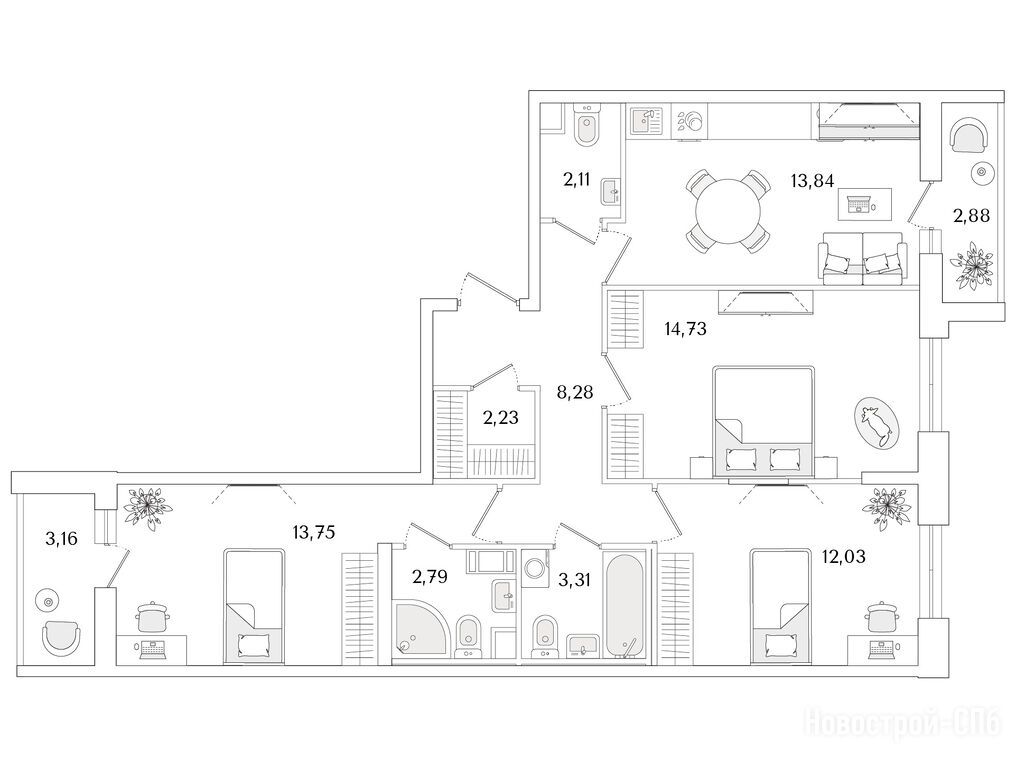 Продается трехкомнатная квартира в новостройке ЖК «Кинопарк» по адресу Санкт-Петербург, Красносельский, улица Тамбасова, 5, корп. 2.2. Общая площадь квартиры - 76.09 кв. м. Тип проекта, по которому построен дом — Монолитно-кирпичный, компания-застройщик — ГК РСТИ (РосСтройИнвест), СЗ РСТИ на Тамбасова. Стоимость квартиры — 23 008 493 руб. Способы оплаты можно уточнить у продавца. Срок сдачи — 2 квартал 2028. Более подробная информация по телефону.
