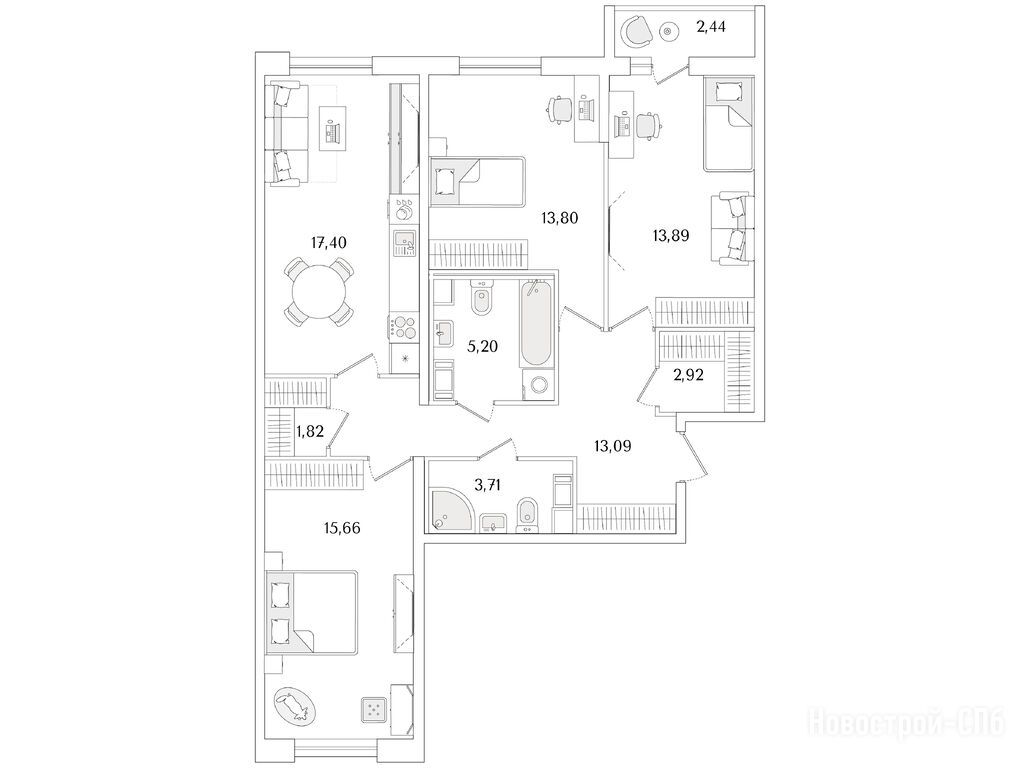 Продается трехкомнатная квартира в новостройке ЖК «Кинопарк» по адресу Санкт-Петербург, Красносельский, улица Тамбасова, 5, корп. 2.1. Общая площадь квартиры - 88.71 кв. м. Тип проекта, по которому построен дом — Монолитно-кирпичный, компания-застройщик — ГК РСТИ (РосСтройИнвест), СЗ РСТИ на Тамбасова. Стоимость квартиры — 24 529 230 руб. Способы оплаты можно уточнить у продавца. Срок сдачи — 2 квартал 2028. Более подробная информация по телефону.